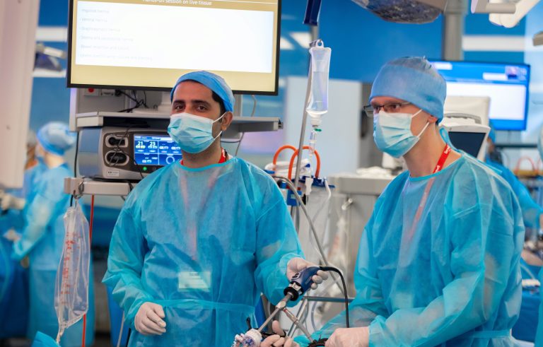 Hands-on session in laparoscopic and robotic hernia surgery on live tissue, under expert tutorial